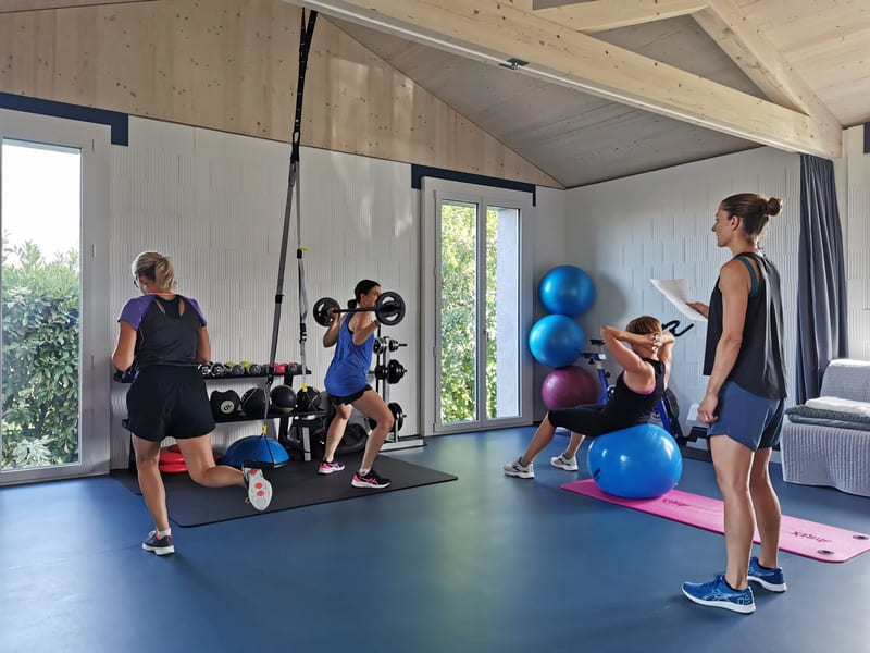 Groupes de 3 à 4 personnes. Entraînement fonctionnel alliant renforcement musculaire et travail cardiovasculaire. Exercices sous forme de circuit training ou cross-training. Utilisation de matériel varié : tapis de course, vélo de spinning, corde à sauter, sangle de suspension TRX, barres et haltères, medicine ball, dual grip medicine ball, Swissball, fitbag, step, Bosu, Gymstick, etc… Sorties en extérieur selon météo et programme.
